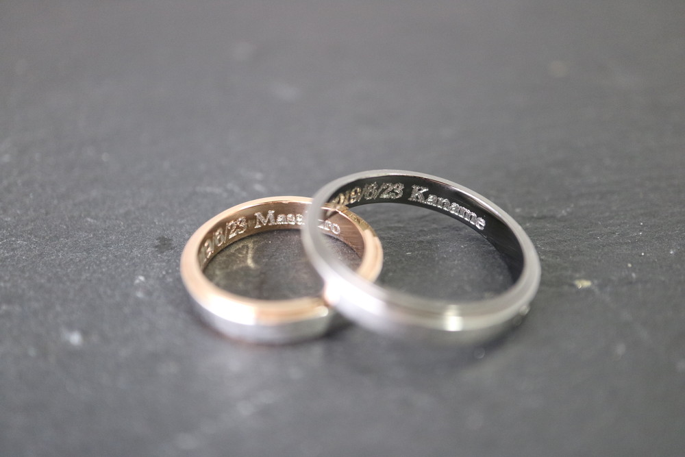 さて、ご依頼を頂き、ペアリングへ刻印をしました♪